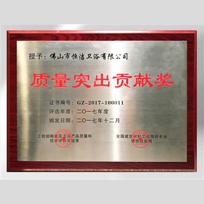 獎 項:2017年度市政府貢獻獎(廣東恒潔衛(wèi)浴有限公司)
