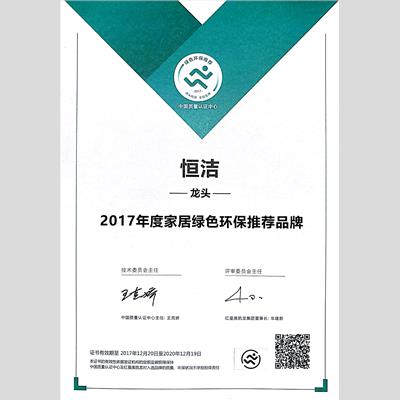 獎 項:2017年度家居綠色環(huán)保推薦品牌 -龍頭
