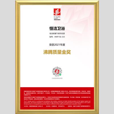 獎 項:沸騰質量金獎-恒潔新翼T5系列花灑HMF156-333