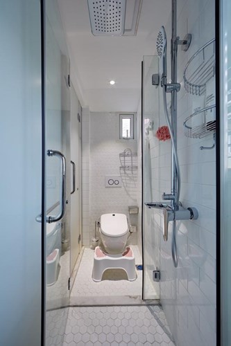 為匹配四代人不同的衛浴空間需求,同時最大化的提升空間使用效率,“空間設計魔法師”史南橋在產品選擇上也務必嚴謹,此次為“魔法師”助力的是恒潔的系列產品,隱藏式水箱坐便器配智能系列蓋板產品,隱藏式水箱節約空間,同時易清潔更美觀;而智能坐便器系列獨特的一鍵旋鈕設計,易記易用,讓水洗、烘干、清洗都能一鍵完成,不用彎腰轉身,對這個「上有老、下有小」家庭的如廁需求——輕松一鍵搞定!讓四代人的操作化繁為簡;淋浴間選用了恒潔舒攬花灑7:3比例完美融合水氧,出水更舒適輕柔,頂噴的暢霖技術,使水力和水量保持均勻,淋浴感受始終如一。