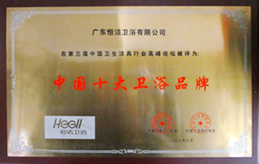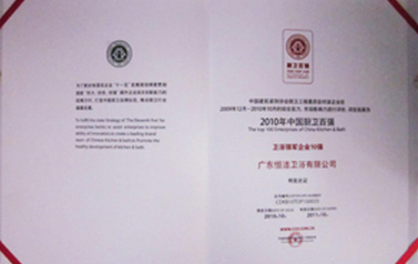 恒潔衛浴連續四年獲得由中國建筑裝飾協會廚衛工程委員會評選的“中國廚衛百強衛浴領軍企業10強”稱號。