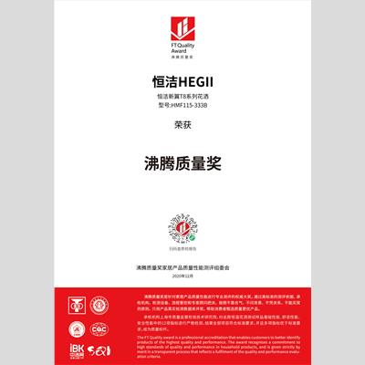 頒發單位:沸騰質量獎家居產品質量性能測評委員會