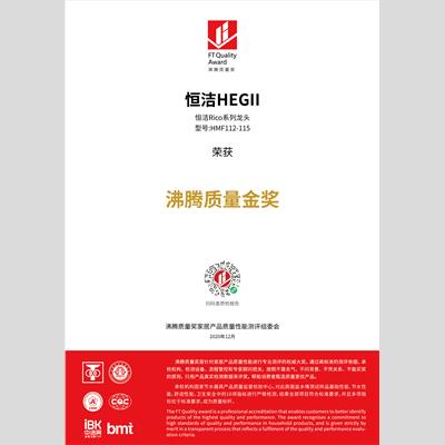 獎 項:沸騰質量獎-恒潔新翼T8系列花灑HMF115-333B