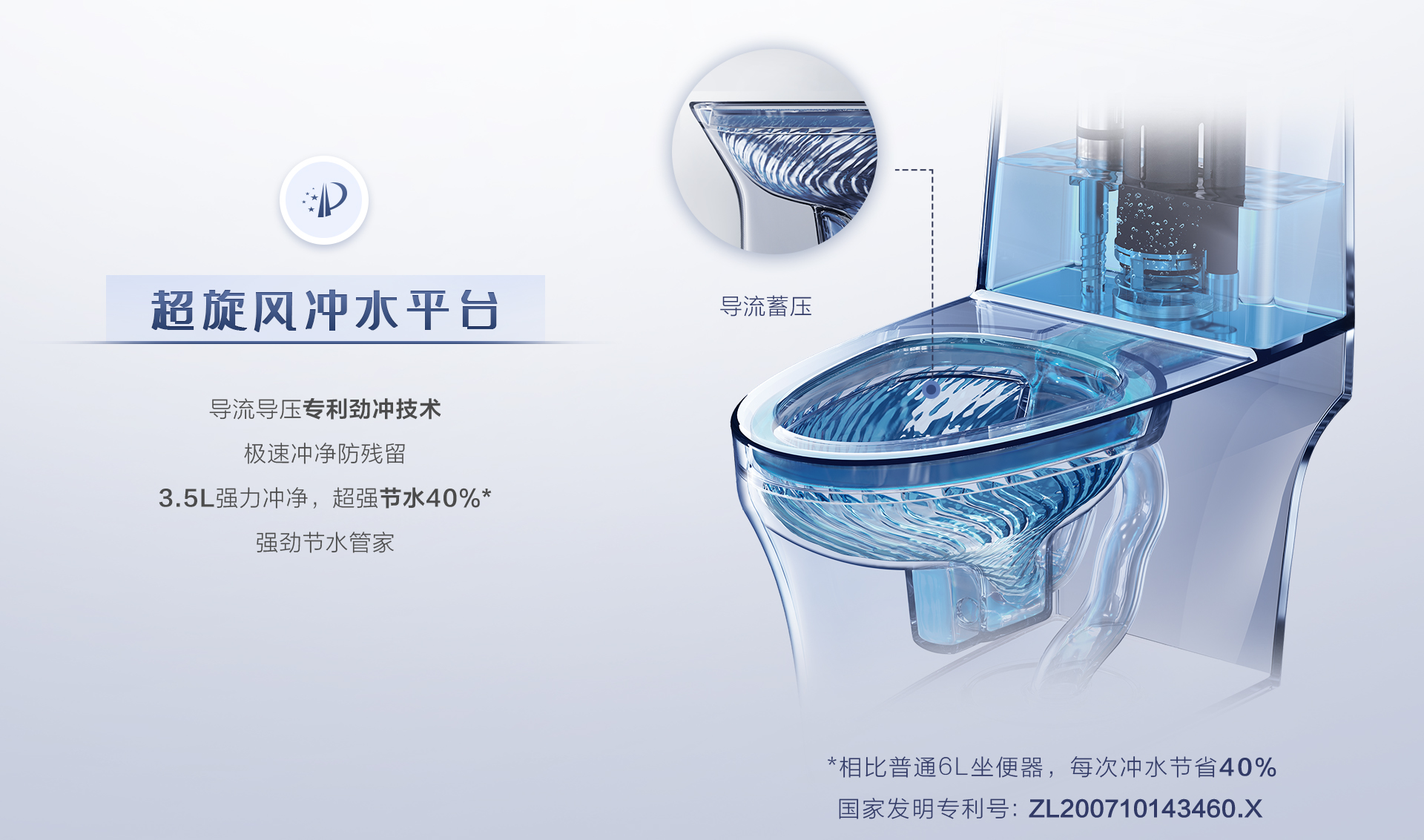 一次沖凈,只需3.5L水,節(jié)水達40%