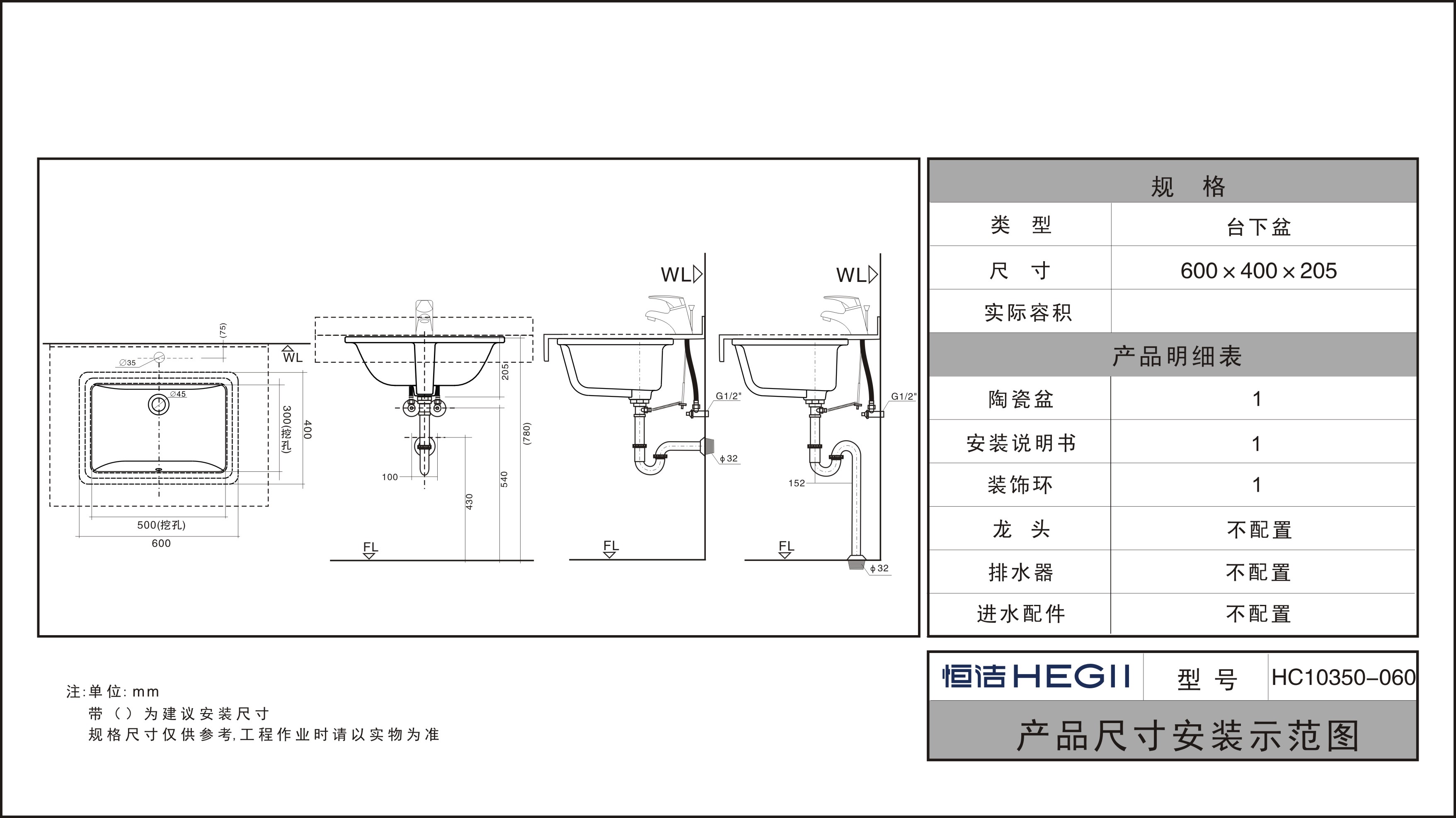 HC10350-054/060方形臺(tái)下盆